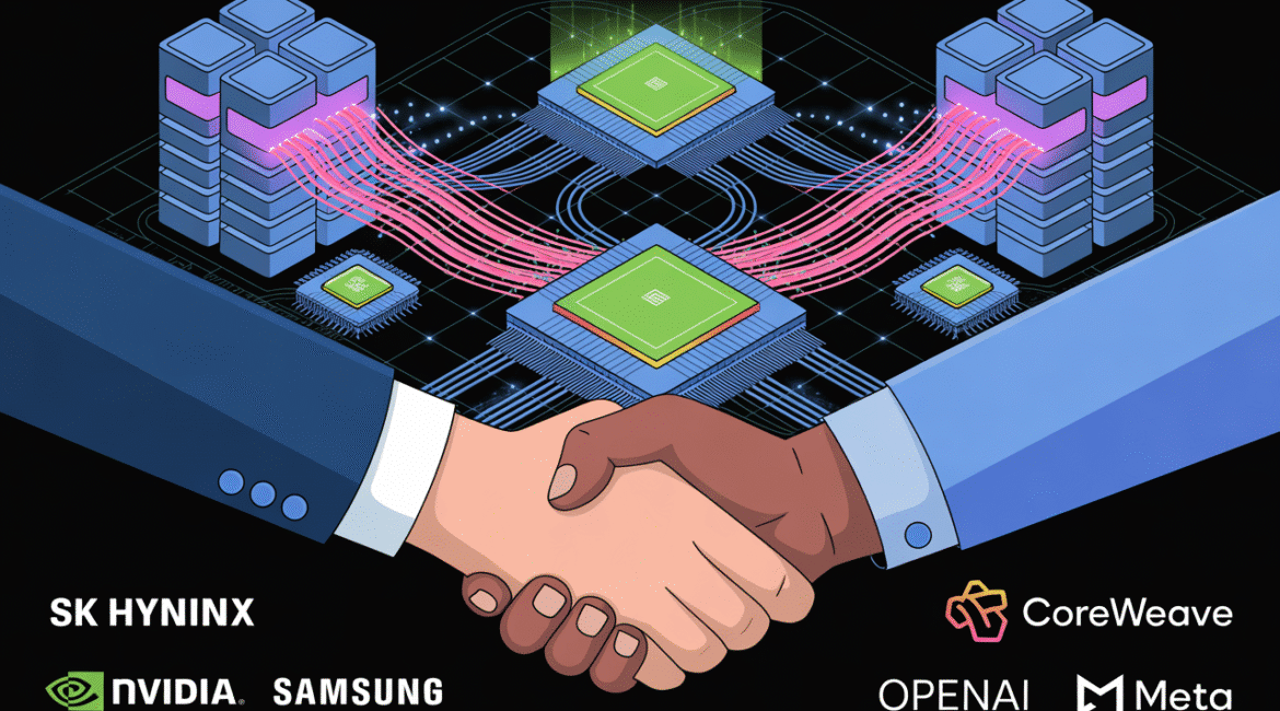 Leading tech giants like Samsung, SK Hynix, CoreWeave, and Nvidia are making multi-billion dollar investments and forging strategic alliances to bolster global artificial intelligence infrastructure. These pivotal moves, including securing chip supplies for OpenAI and striking key agreements with Meta, underscore the accelerating expansion and escalating demand for advanced computational...